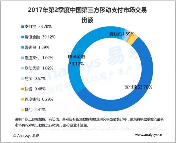 以微信支付为主体的腾讯金融份额为 39.35%,稳中有升,同比提高 1.23 个百分点。